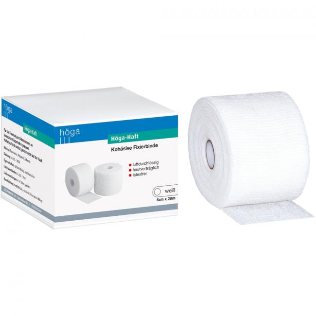 Höga-Haft-Binden ist eine kohäsive, auf sich selbst haftende, elastische Fixierbinde. Die Höga-Haft sind hautfreundlich, luftdurchlässig und elastisch. Höga-Haft ist in naturweiß und in weiß in verschiedenen Längen lieferbar. Die Höga-Haft-Binde weiß ist latexfrei. Höga-Haft-Binden für die Fixierung an Gelenken und an konischen Körperteilen geeignet. Die Höga-Haft haftet auf sich selbst, jedoch nicht auf der Haut. Kohäsive Fixierbinde für die Fixierung an Gelenken und an konischen Körperteilen geeignet.