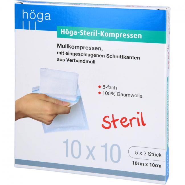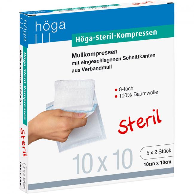 Produktinformationen HÖGA-KOMPRESSEN 10x10 cm steril 8fach, 5x2 Stück