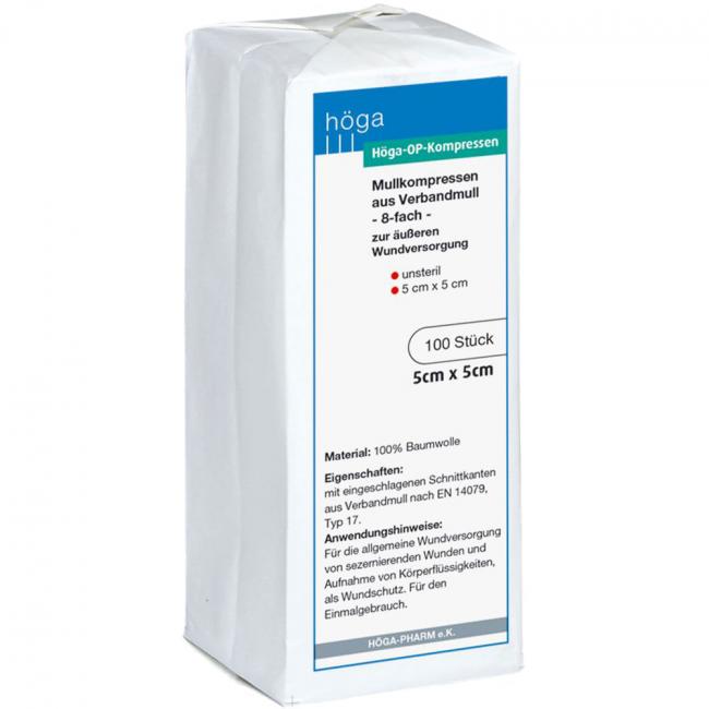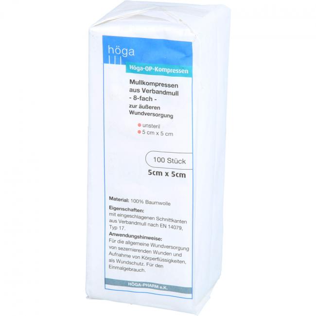 Produktinformationen HÖGA-KOMPRESSEN OP 5x5 cm unsteril 8fach, 100 Stück