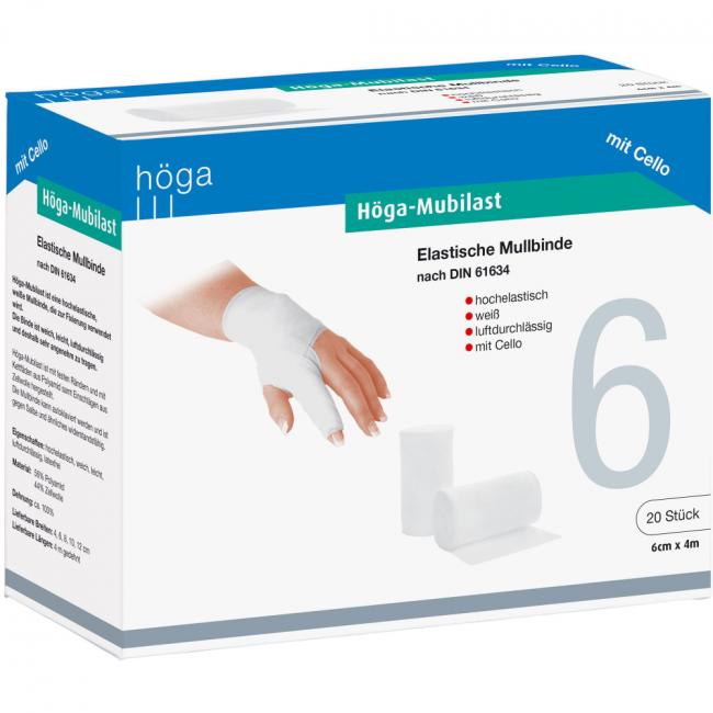 Hochelastisch, weiß, luftdurchlässig. Höga-Mubilast ist eine hochelastische, weiße Mullbinde, die zur Fixierung verwendet wird. Die Binde ist weich, leicht luftdurchlässig und deshalb sehr angenehm zu tragen. Höga-Mubilast ist mit festen Rändern und mit Kettfäden aus Polyamid samt Einschlägen aus Zellwolle hergestellt. Die Mullbinde kann autoklaviert werden und ist gegen Salbe und ähnliches widerstandsfähig.