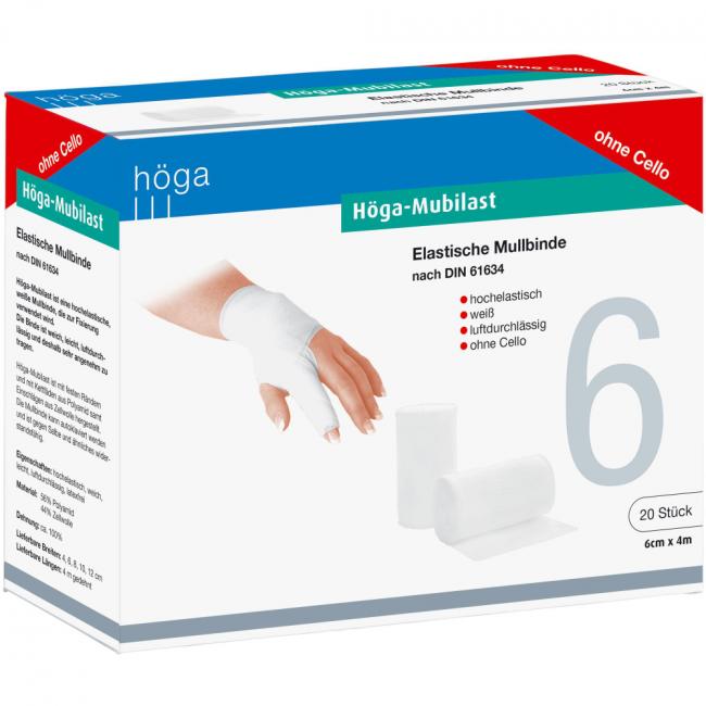 Hochelastisch, weiß, luftdurchlässig. Höga-Mubilast ist eine hochelastische, weiße Mullbinde, die zur Fixierung verwendet wird. Die Binde ist weich, leicht luftdurchlässig und deshalb sehr angenehm zu tragen. Höga-Mubilast ist mit festen Rändern und mit Kettfäden aus Polyamid samt Einschlägen aus Zellwolle hergestellt. Die Mullbinde kann autoklaviert werden und ist gegen Salbe und ähnliches widerstandsfähig.