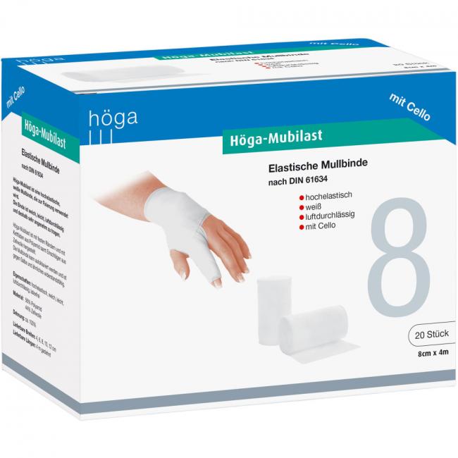 Hochelastisch, weiß, luftdurchlässig. Höga-Mubilast ist eine hochelastische, weiße Mullbinde, die zur Fixierung verwendet wird. Die Binde ist weich, leicht luftdurchlässig und deshalb sehr angenehm zu tragen. Höga-Mubilast ist mit festen Rändern und mit Kettfäden aus Polyamid samt Einschlägen aus Zellwolle hergestellt. Die Mullbinde kann autoklaviert werden und ist gegen Salbe und ähnliches widerstandsfähig.
