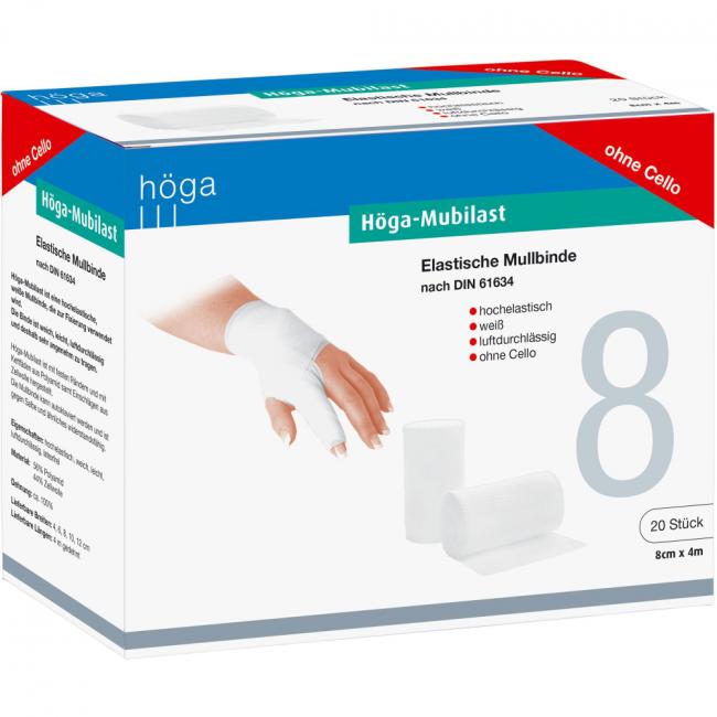 Hochelastisch, weiß, luftdurchlässig. Höga-Mubilast ist eine hochelastische, weiße Mullbinde, die zur Fixierung verwendet wird. Die Binde ist weich, leicht luftdurchlässig und deshalb sehr angenehm zu tragen. Höga-Mubilast ist mit festen Rändern und mit Kettfäden aus Polyamid samt Einschlägen aus Zellwolle hergestellt. Die Mullbinde kann autoklaviert werden und ist gegen Salbe und ähnliches widerstandsfähig.