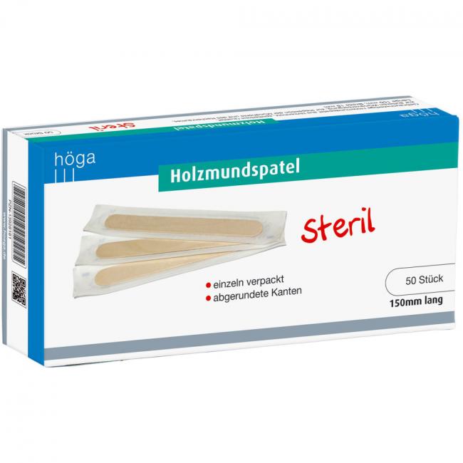 Pflichtangaben HOLZMUNDSPATEL steril 150 mm lang einzeln verpackt, 50 Stück
