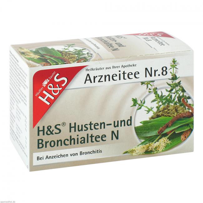 H&S Husten- und Bronchialtee N, Arzneitee. Anwendungsgebiete: Symptome der Bronchitis sowie zur Reizlinderung bei Katarrhen der oberen Luftwege mit trockenem Husten.