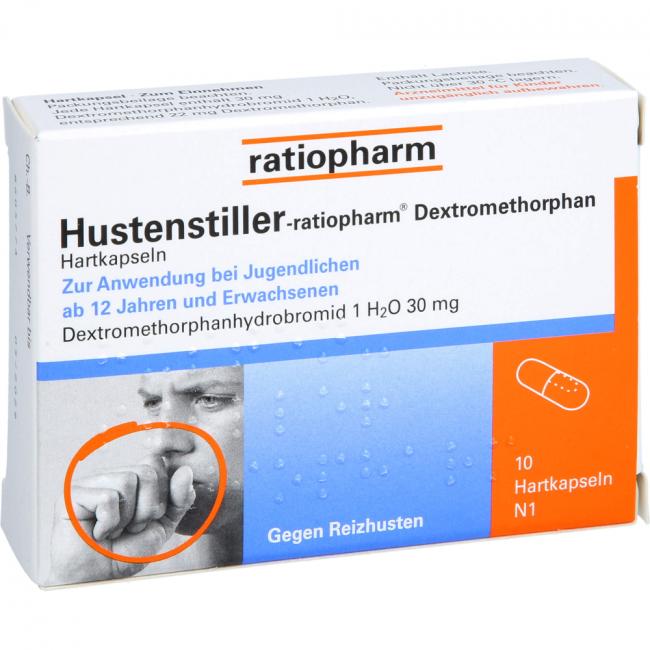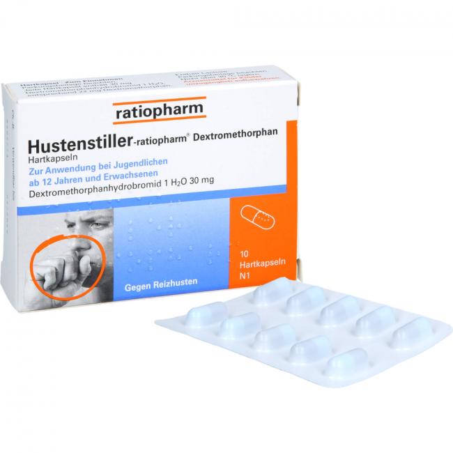 Hustenstiller-ratiopharm Dextromethorphan Hartkapseln. Wirkstoff: Dextromethorphanhydrobromid 1 H2O 30 mg. Anwendungsgebiete: zur symptomatischen Behandlung des Reizhustens (unproduktiver Husten).
