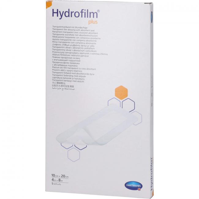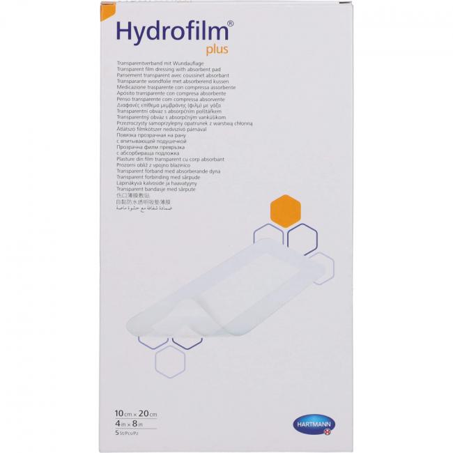 Hydrofilm plus ist ein steriler, selbstklebender Transparentverband mit absorbierender Wundauflage, der für die postoperative Versorgung leicht exsudierender Wunden, als Schutz gegen eindringende Bakterien und als Sterilverband für kleinere Verletzungen geeignet ist.