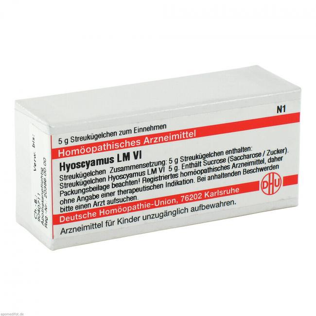 LM Hyoscyamus VI ist ein homöopathisches Arzneimittel. Registriertes homöopathisches Arzneimittel, daher ohne Angabe einer therapeutischen Indikation.