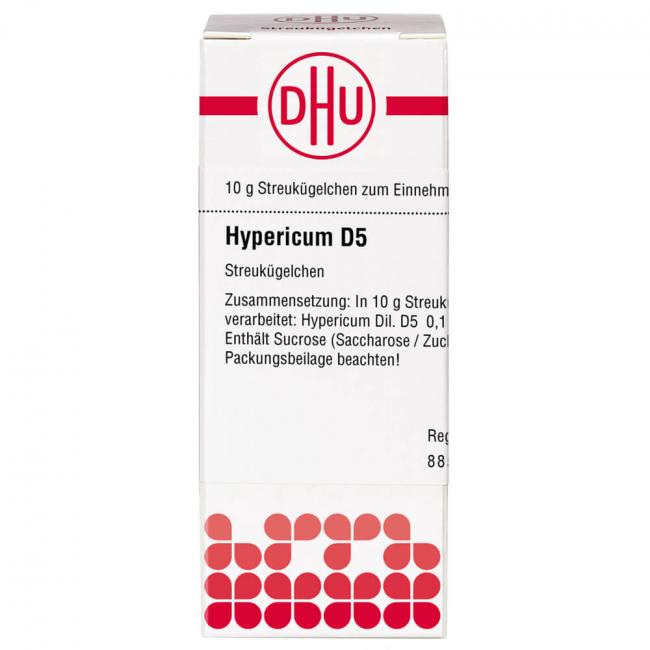 Hypericum D 5. Anwendungsgebiete: Registriertes homöopathisches Arzneimittel, daher ohne Angabe einer therapeutischen Indikation. Warnhinweis: Dieses Arzneimittel enthält Sucrose (Saccharose / Zucker).