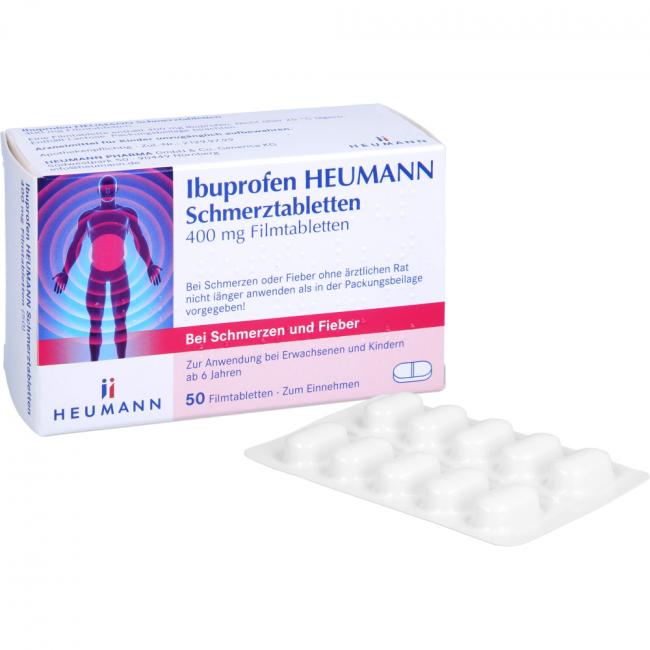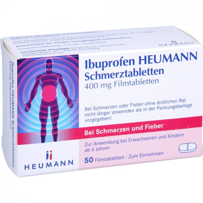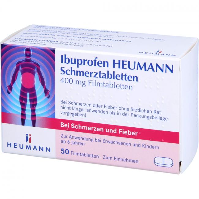 Pflichtangaben IBUPROFEN Heumann Schmerztabletten 400 mg, 50 Stück