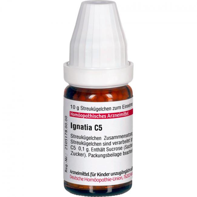 Ignatia C 5. Anwendungsgebiete: Registriertes homöopathisches Arzneimittel, daher ohne Angabe einer therapeutischen Indikation. Warnhinweis: Dieses Arzneimittel enthält Sucrose (Saccharose / Zucker).