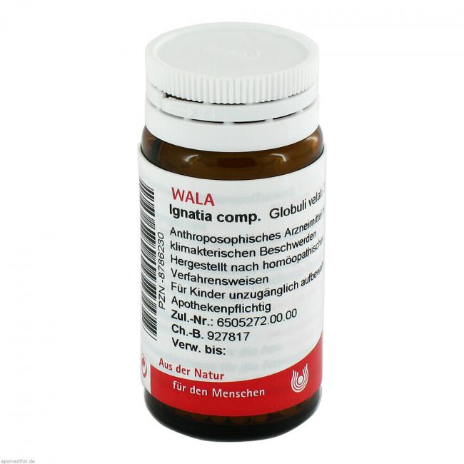 Ignatia comp., Globuli velati. Anwendungsgebiete: Gemäß der anthroposophischen Menschen- und Naturerkenntnis. Dazu gehören: Klimakterische Störungen, besonders psychischer Art, hysteriforme Syndrome und Verstimmungszustände.