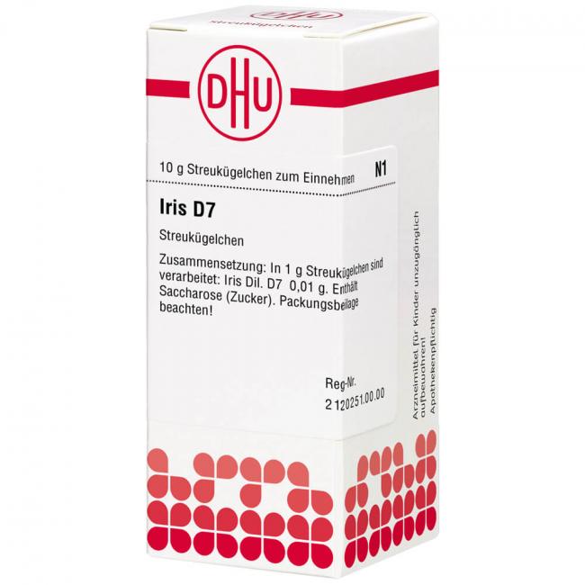 Iris D 7 ist ein homöopathisches Arzneimittel. Registriertes homöopathisches Arzneimittel, daher ohne Angabe einer therapeutischen Indikation.