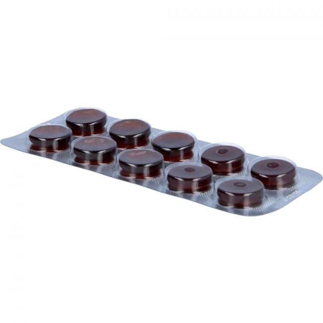 1 Pastille enthält 80 mg wässrigen Auszug aus Isländisch Moos (0,4 - 0,8 : 1). Weitere Bestandteile: Arabisches Gummi, Saccharose, dünnflüssiges Paraffin, Zuckerkulör (Farbstoff E 150), gereinigtes Wasser. 1 Pastille enthält 424 mg Saccharose = 0,035 BE.