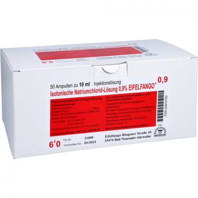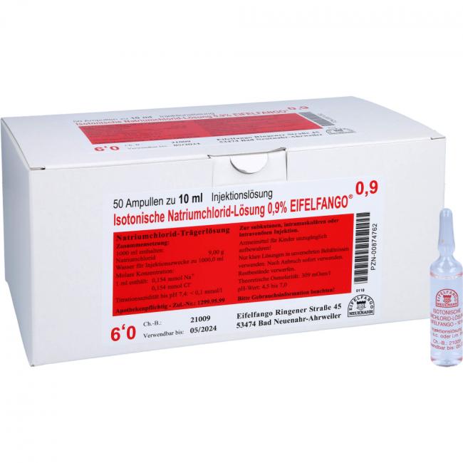 Produktinformationen ISOTONISCHE NaCl Lösung 0,9% Eifelfango Inj.-Lsg., 50x10 Milliliter