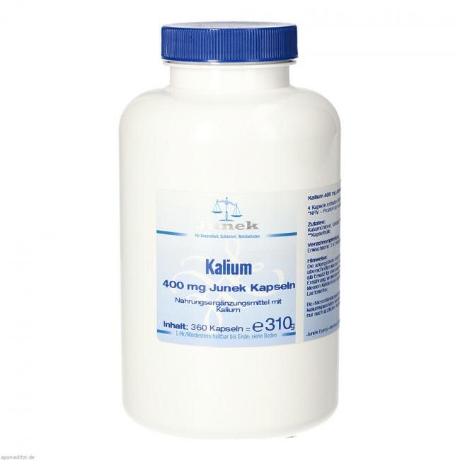 Pflichtangaben KALIUM 400 mg Junek Kapseln, 360 Stück