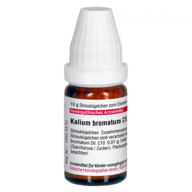 Kalium bromatum C 10. Anwendungsgebiete: Registriertes homöopathisches Arzneimittel, daher ohne Angabe einer therapeutischen Indikation. Warnhinweis: Dieses Arzneimittel enthält Sucrose (Saccharose / Zucker).