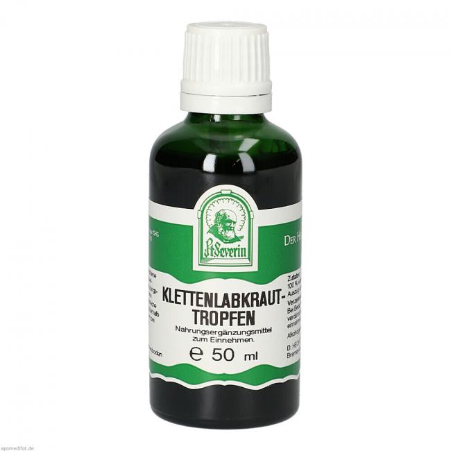 Klettenlabkrauttropfen enthalten einen hochwertigen wässrig/alkoholischen Auszug aus dem Klettenlabkraut. Alkoholgehalt: 66% Vol.