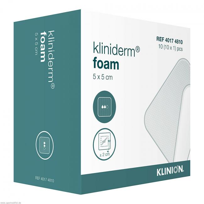 Pflichtangaben KLINIDERM foam 5x5 cm steril, 10 Stück