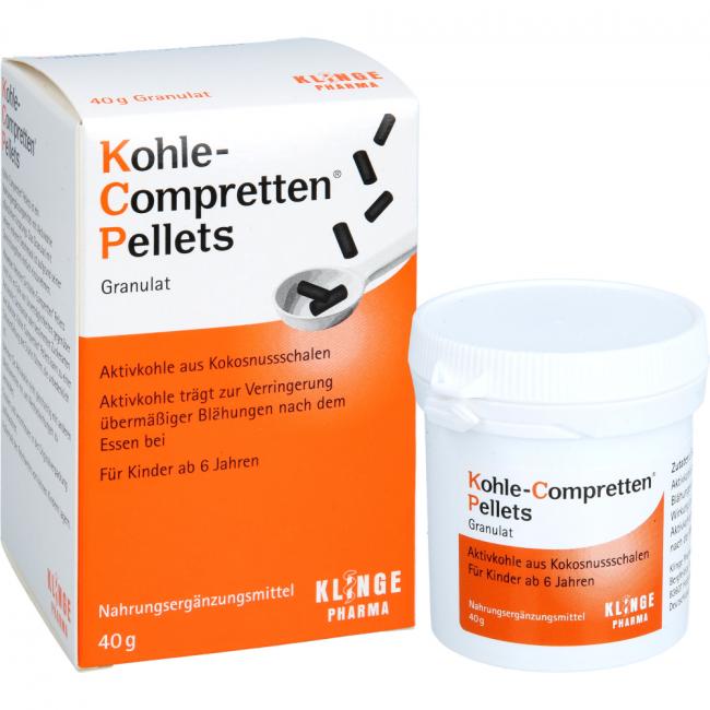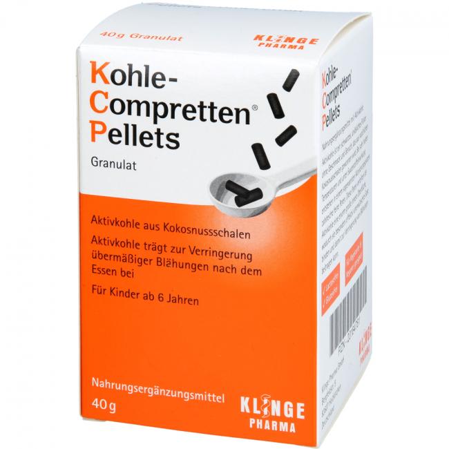 Pflichtangaben KOHLE Compretten Pellets Granulat, 40 Gramm
