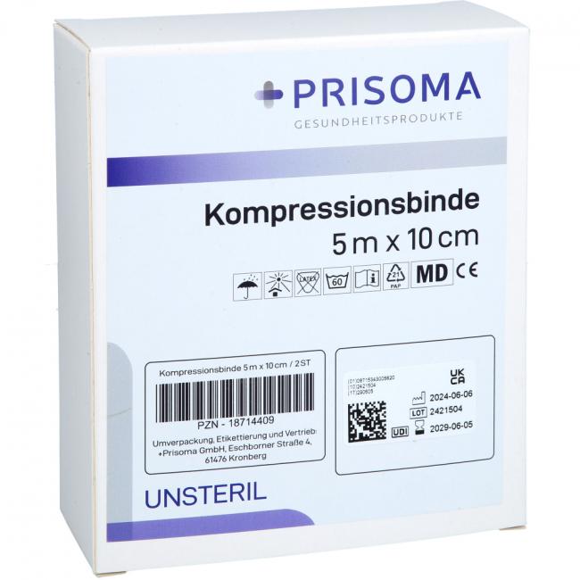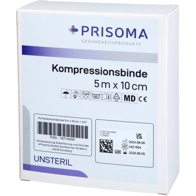 Pflichtangaben KOMPRESSIONSBINDE Prisoma 10 cmx5 m, 2 Stück