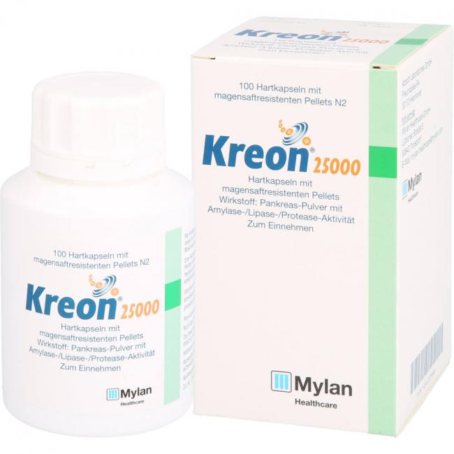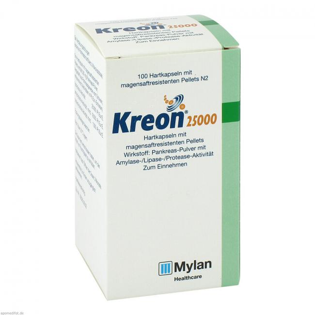 Kreon 25000 darf nicht eingenommen werden bei nachgewiesener Überempfindlichkeit gegen Schweinefleisch (Schweinefleischallergie) oder einen der in Abschnitt 6 genannten sonstigen Bestandteile dieses Arzneimittels.