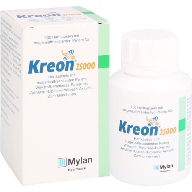 Produktinformationen KREON 25.000 Hartkps.m.magensaftr.überz.Pellets, 100 Stück
