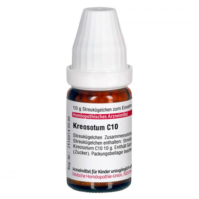 Kreosotum C 10. Anwendungsgebiete: Registriertes homöopathisches Arzneimittel, daher ohne Angabe einer therapeutischen Indikation. Warnhinweis: Dieses Arzneimittel enthält Sucrose (Saccharose / Zucker).