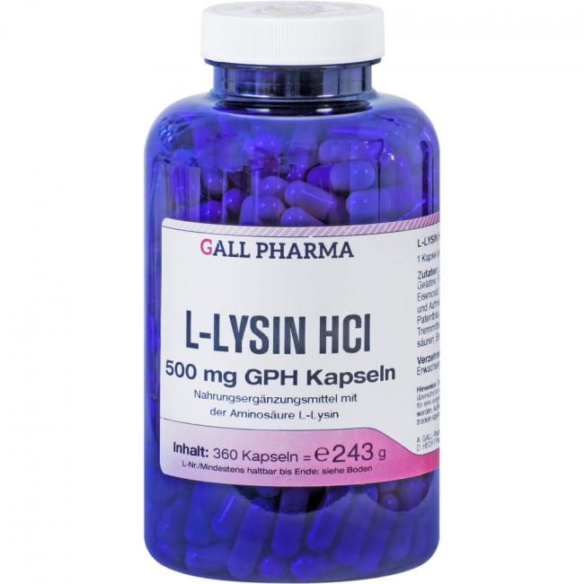 Pflichtangaben L-LYSIN 500 mg GPH Kapseln, 360 Stück