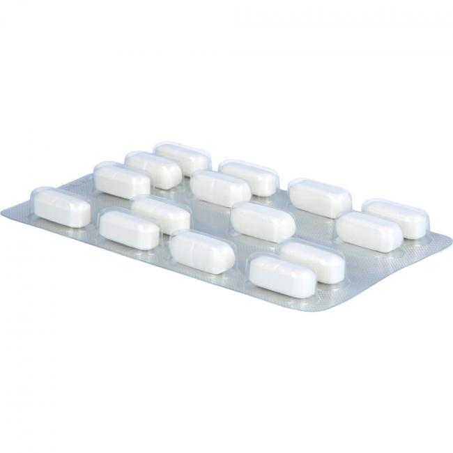 2 x täglich 2 Tabletten jeweils zu den Mahlzeiten unzerkaut mit reichlich Wasser schlucken.