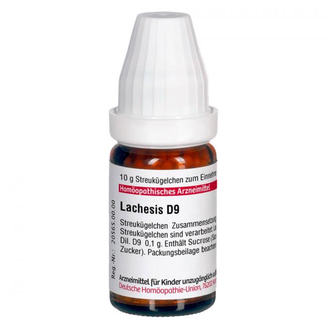 Lachesis D 9. Anwendungsgebiete: Registriertes homöopathisches Arzneimittel, daher ohne Angabe einer therapeutischen Indikation. Warnhinweis: Dieses Arzneimittel enthält Sucrose (Saccharose / Zucker).