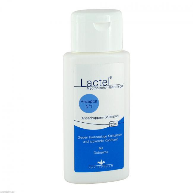Lactel N°1 Shampoo gegen Schuppen befreit Ihr Haar und Ihre Kopfhaut von Schuppen, beseitigt den Juckreiz und sorgt gleichzeitig für Reinigung und Pflege von Haar und Kopfhaut. Lactel N°1 bekämpft nicht nur die Schuppen, sondern auch deren Ursachen und schützt die Kopfhaut vor neuer Schuppenbildung. Lactel N°1 Shampoo ist für alle Haartypen geeignet. Der Anti-Schuppen-Wirkstoff Octopirox wird ergänzt durch eine milde hautfreundliche Rezepturgrundlage.