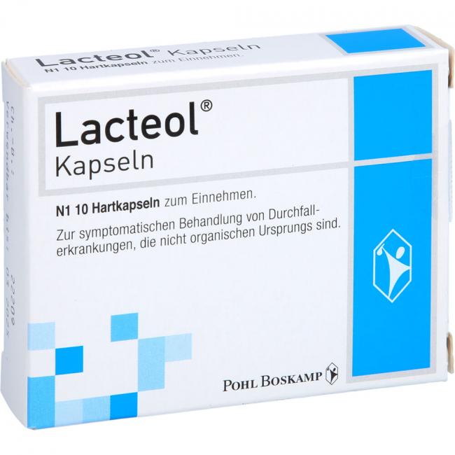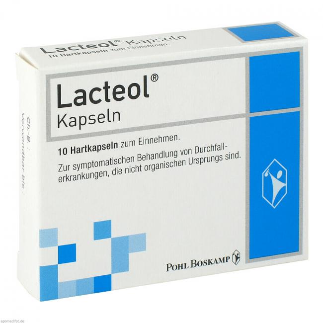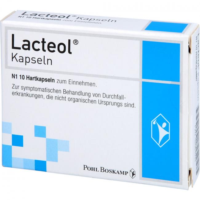 Lacteol Kapseln. Wirkstoffe: Gefriergetrocknete Milchsäurebakterien (Lyophilisat), inaktiviert in ihrem Kulturmedium. Anwendungsgebiete: zur symptomatischen Behandlung von Durchfallerkrankungen, die nicht organischen Ursprungs sind. Warnhinweis: Enthält Lactose.