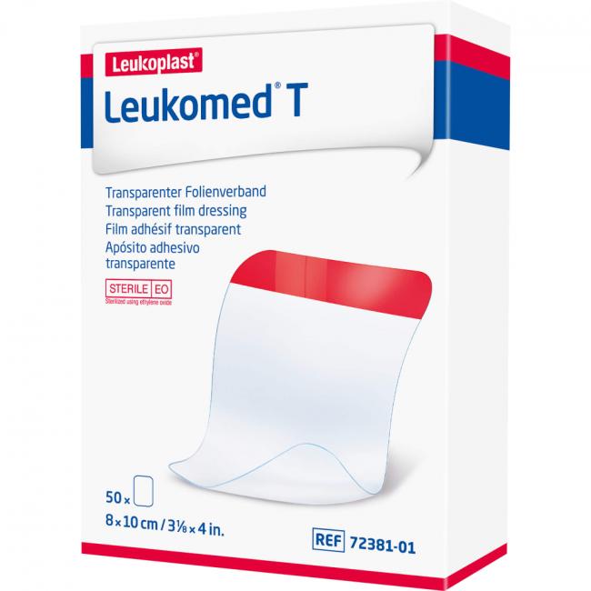 Ein Wundverband, zwei Anwendungen: Leukomed T fixiert einerseits Katheter, Kanülen, Wundauflagen sowie medizinische Hilfsmittel wasser- und keimdicht. Andererseits werden nicht mehr sezernierende Wunden vor Reibung und Scherkräften geschützt. Hierdurch können auch dekubitusgefährdete Hautstellen entlastet werden. Durch die hohe Wasserdampfdurchlässigkeit der Folie werden Feuchtigkeitsansammlungen verhindert und das Risiko von Mazerationen reduziert. Die hochflexible, wasserdichte Folie bietet einen sehr hohen Tragekomfort und sitzt auch an Gelenken und Extremitäten wie eine zweite Haut. Leukomed T ist steril und stellt einen zuverlässigen Schutz gegen Bakterien und Viren dar. Die abgerundeten Ecken gewährleisten eine sichere Fixierung. Die Transparenz ermöglicht eine kontinuierliche Inspektion der Wunde oder Fixierung. Das intuitive Applikationssystem mit dem roten Streifen gewährleistet eine unkomplizierte, schnelle Anwendung, auch mit Handschuhen. Leukomed T besteht aus einer transparenten und extradünnen Polyurethanfolie, vollflächig beschichtet mit Polyacrylatkleber.