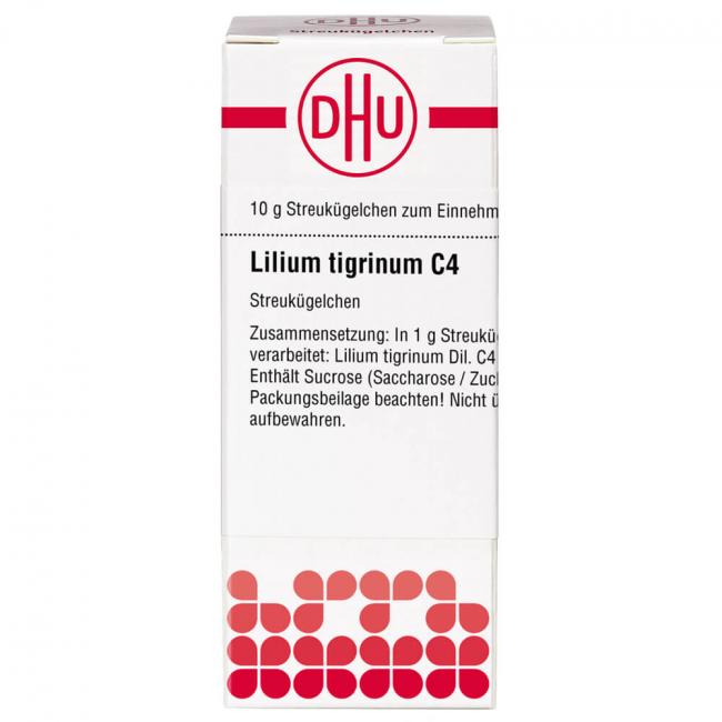 Lilium tigrinum C 4. Anwendungsgebiete: Registriertes homöopathisches Arzneimittel, daher ohne Angabe einer therapeutischen Indikation. Warnhinweis: Dieses Arzneimittel enthält Sucrose (Saccharose / Zucker).