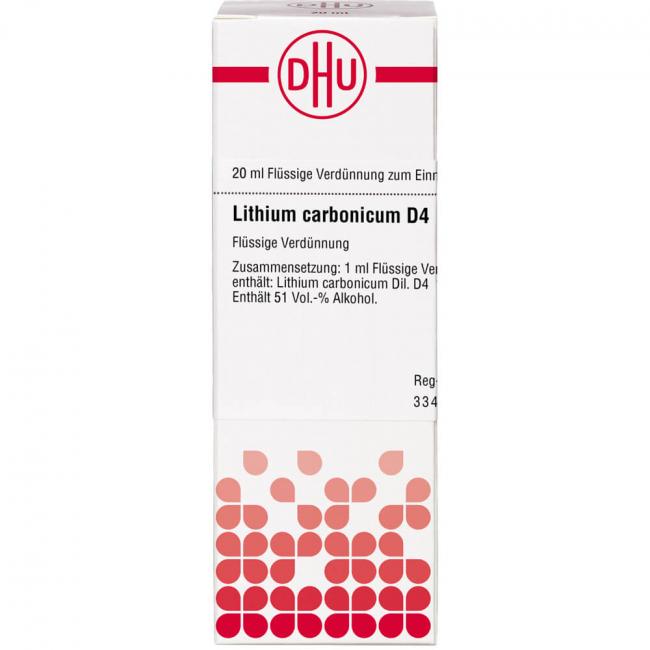 Lithium Carbonicum D 4. Anwendungsgebiete: Registriertes homöopathisches Arzneimittel, daher ohne Angabe einer therapeutischen Indikation. Warnhinweis: Enthält 51 Vol.% Alkohol.