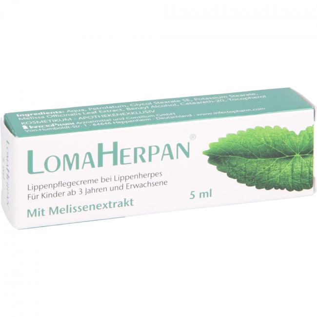 LomaHerpan Lippenpflegecreme mit hochkonzentriertem Melissenextrakt wurde speziell zur Pflege und zum Schutz von herpesgestressten Lippen entwickelt. Die im Melissenextrakt enthaltenen ätherischen Öle pflegen die strapazierten und empfindlichen Lippen insbesondere während eines Herpes-Schubes. Studien zeigen, dass durch die Anwendung von LomaHerpan direkt zu Beginn eines Herpes-Schubes die sichtbaren Zeichen des Lippenherpes wie Rötung und Schwellung reduziert werden können - und somit neben der Pflege der Lippen auch das Wohlbefinden des Betroffenen gesteigert werden kann.