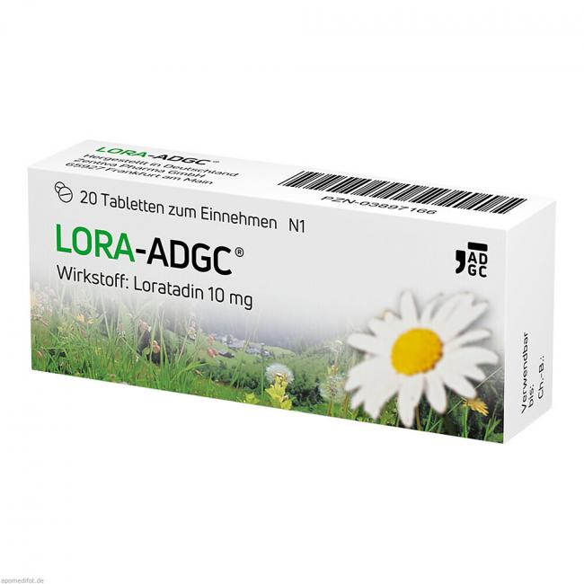 Lora-ADGC gehört zur Gruppe der Antihistaminika und wird zur Behandlung der Beschwerden bei bestimmten allergischen Erkrankungen, die mit einer erhöhten Histamin-Freisetzung verbunden sind, angewendet. Anwendungsgebiete: Lora-ADGC wird zur Behandlung der Beschwerden bei allergisch bedingtem Schnupfen (z.B. Heuschnupfen) und bei chronischer, idiopathischer Urtikaria (Nesselsucht unbekannter Ursache) eingesetzt.