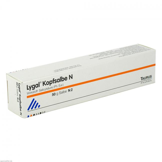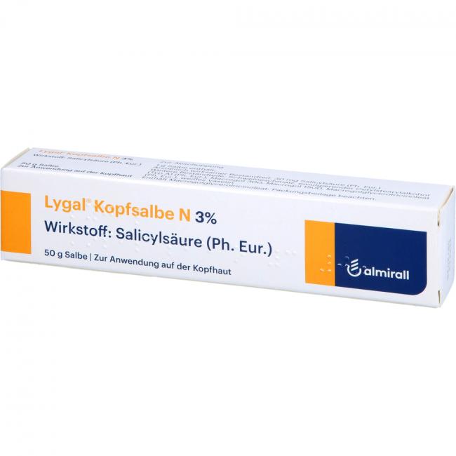 Lygal Kopfsalbe N 3% Wirkstoff: Salicylsäure. Anwendungsgebiete: wird angewendet zur Abschuppung von Hornzellen, z. B. bei Schuppenflechte (Psoriasis) des behaarten Kopfes und bei Kopfschuppen.