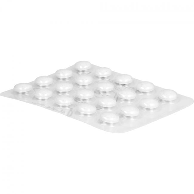 Blister mit zartbeigen, bikonvexen Tabletten. Lymphdiaral Basistabletten ist als Packung mit 100 Tabletten erhältlich.