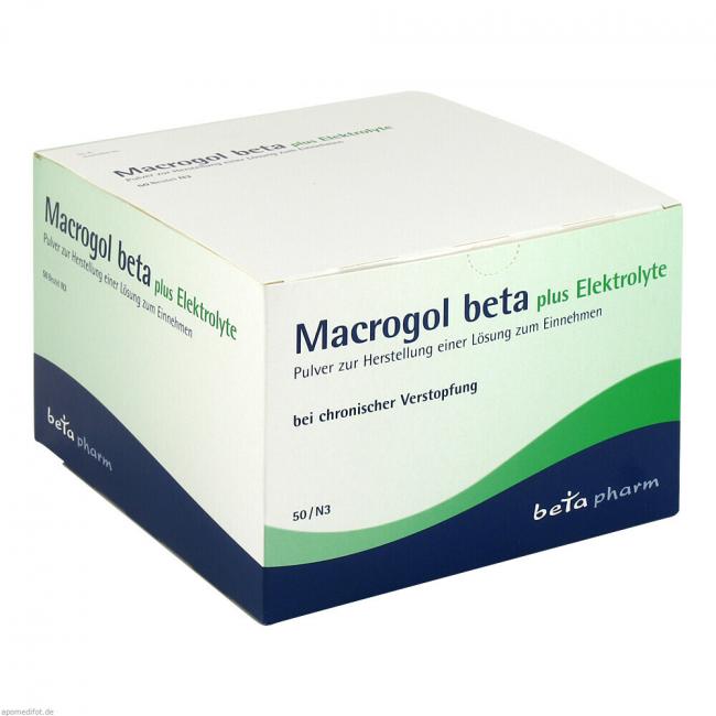 Der Name dieses Arzneimittels ist Macrogol beta plus Elektrolyte Pulver. Macrogol beta plus Elektrolyte ist ein Arzneimittel aus der Gruppe der Laxanzien zur Behandlung von Verstopfung bei Erwachsenen, Jugendlichen und älteren Patienten. Es wird für die Anwendung bei Kindern unter 12 Jahren nicht empfohlen. Macrogol beta plus Elektrolyte verhilft Ihnen zu einer komfortablen Darmtätigkeit, selbst wenn Sie bereits über einen langen Zeitraum unter Verstopfung gelitten haben.