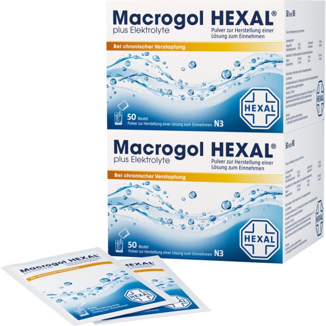 Macrogol Hexal plus Elektrolyte ist ein Abführmittel zur Behandlung von Verstopfung (insbesondere bei länger anhaltender Verstopfung) bei Erwachsenen, Jugendlichen und älteren Patienten. Die Anwendung bei Kindern unter 12 Jahren wird nicht empfohlen. Macrogol 3350 macht Ihren Stuhl weicher und ermöglicht eine leichtere Passage, wodurch Sie von der Verstopfung befreit werden. Die Elektrolyte (Salze) helfen, die normalen Spiegel von körpereigenem Natrium, Kalium und Wasser beizubehalten, während Ihre Verstopfung behandelt wird.