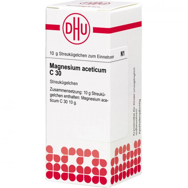 Magnesium aceticum C 30. Anwendungsgebiete: Registriertes homöopathisches Arzneimittel, daher ohne Angabe einer therapeutischen Indikation. Warnhinweis: Dieses Arzneimittel enthält Sucrose (Saccharose / Zucker).