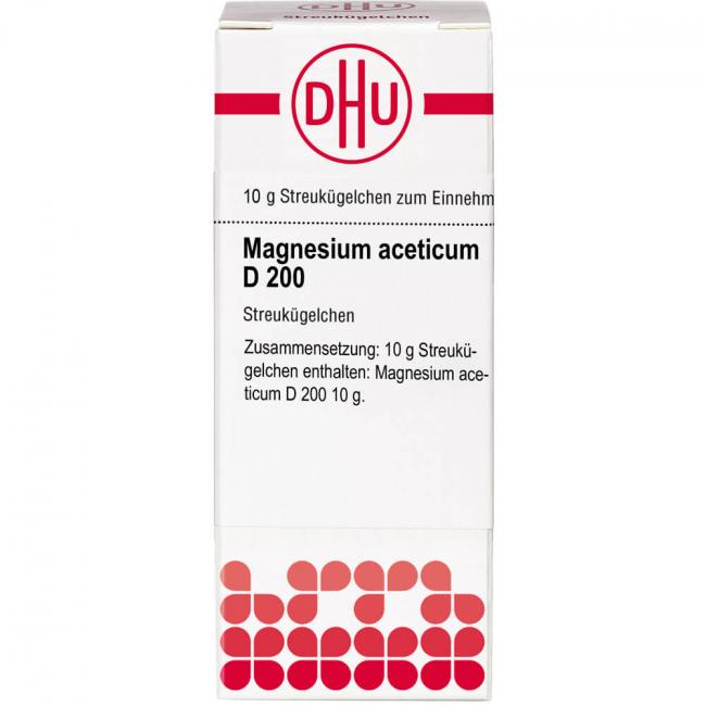 Magnesium aceticum D 200. Anwendungsgebiete: Registriertes homöopathisches Arzneimittel, daher ohne Angabe einer therapeutischen Indikation. Warnhinweis: Dieses Arzneimittel enthält Sucrose (Saccharose / Zucker).