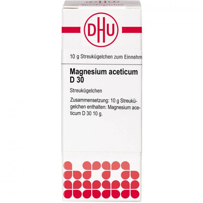 Magnesium aceticum D 30. Anwendungsgebiete: Registriertes homöopathisches Arzneimittel, daher ohne Angabe einer therapeutischen Indikation. Warnhinweis: Dieses Arzneimittel enthält Sucrose (Saccharose / Zucker).