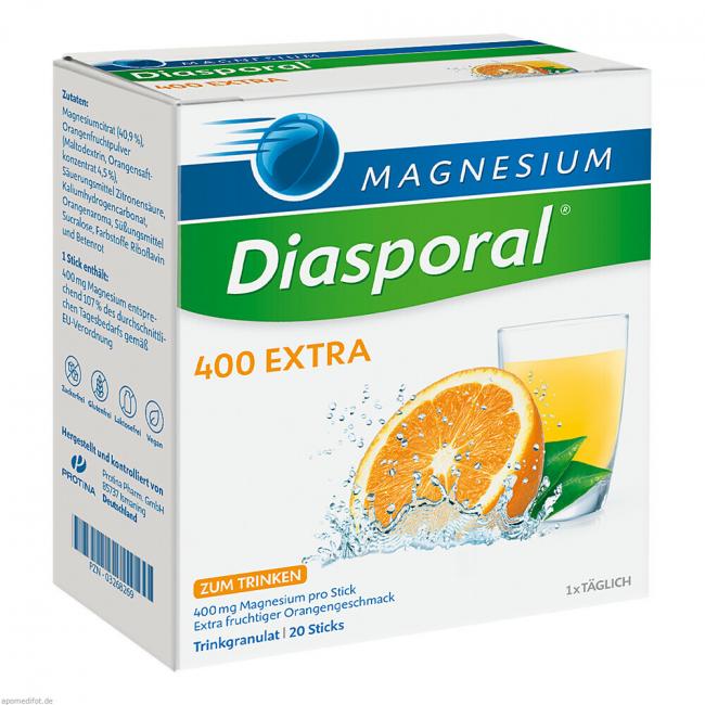 Pflichtangaben MAGNESIUM DIASPORAL 400 Extra Trinkgranulat, 20 Stück