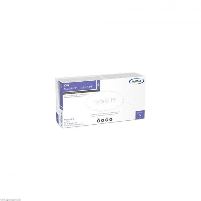 Pflichtangaben MAIMED-hybrid PF U.Hands.Vinyl/Nitril unst.S blau, 100 Stück