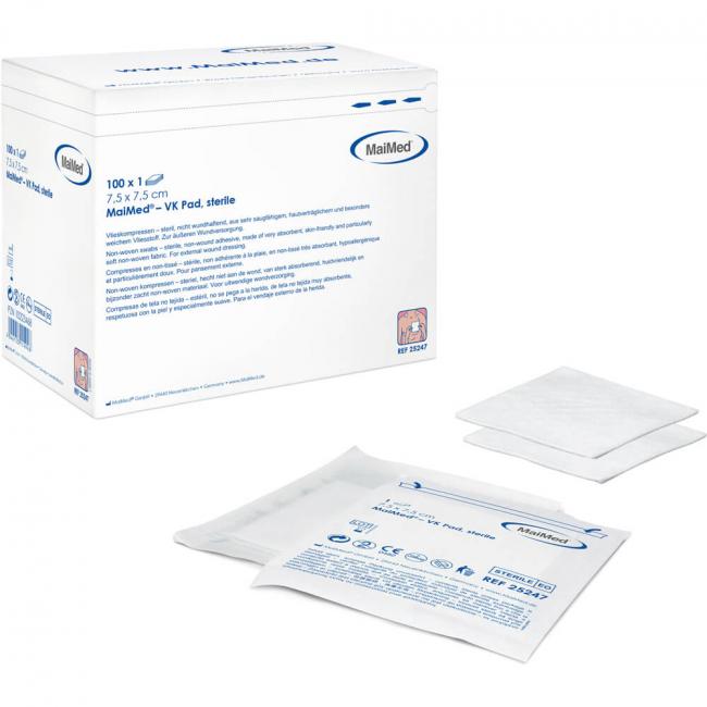 Produktinformationen MAIMED VK Pad Vlieskompressen steril 7,5x7,5 cm, 100 Stück