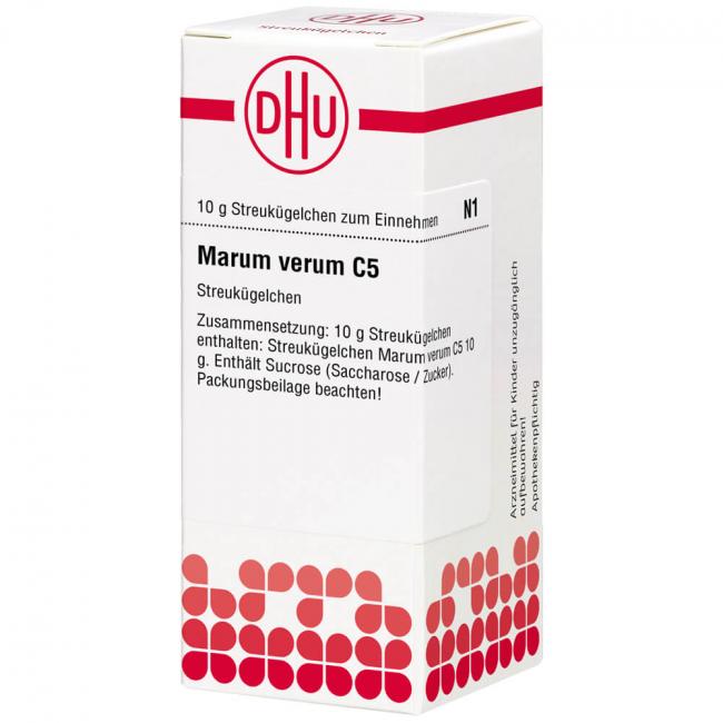 Marum verum C 5. Anwendungsgebiete: Registriertes homöopathisches Arzneimittel, daher ohne Angabe einer therapeutischen Indikation. Warnhinweis: Dieses Arzneimittel enthält Sucrose (Saccharose / Zucker).