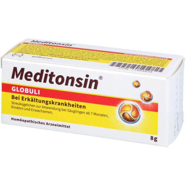 Meditonsin Globuli sind ein homöopathisches Arzneimittel bei Erkältungskrankheiten. Anwendungsgebiet: Die Anwendungsgebiete leiten sich von den homöopathischen Arzneimittelbildern ab. Dazu gehören: Akute Entzündungen des Hals-, Nasen- und Rachenraumes. Wenn Sie sich nach 3 Tagen nicht besser oder gar schlechter fühlen, wenden Sie sich an Ihren Arzt.